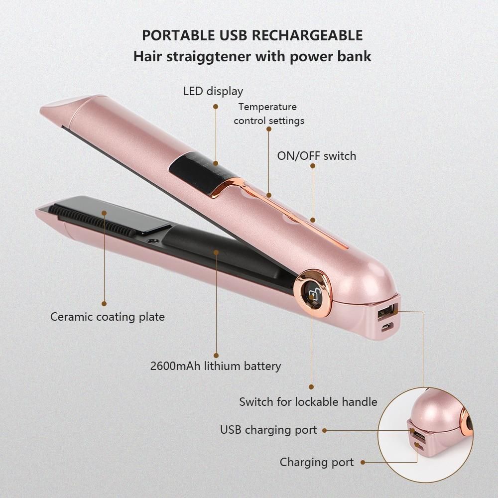 【2600mAh Battery, Quickly Heat】USB rechargeable 2600mAh battery would last for 30 minutes after fully charge(Don't use it while charging). The hair flat iron takes 3 hours to be fully charged. High-quality ceramic heating plates heat quickly and evenly, it would help you do a perfect hair look in minutes.
