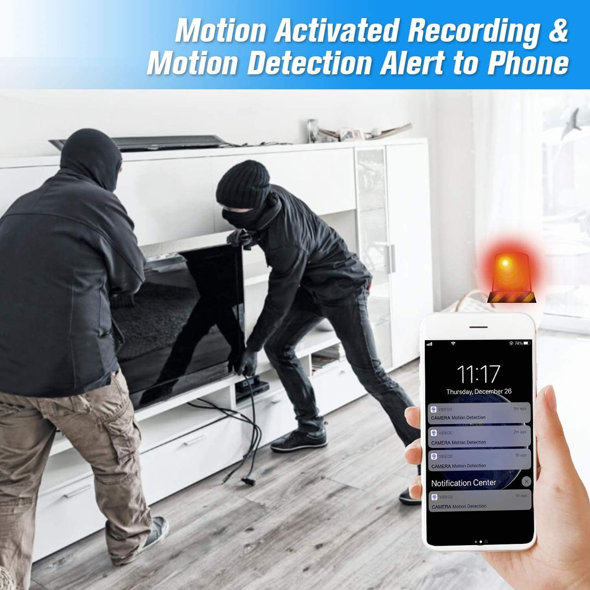 - Motion Detection Alert to Phone & Clearly Night Vision View: You can manually turn on motion detection function, and your phone will receive motion detection alert when mini nanny cam detecting someone move. Built-in 6 improved invisible infrared lights in the hidden nanny camera, you can view clearly under dark environments. The working indicator of the small nanny camera can also be turned off to make the wireless spy nanny cam completely concealed.