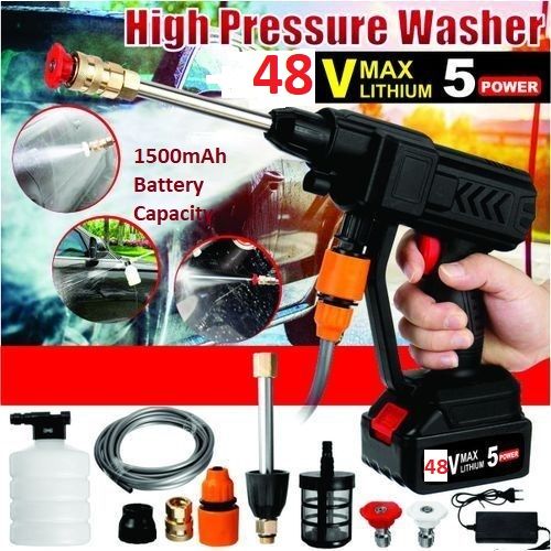 The length of the outlet pipe: 5mIt is easy to start in that you insert the 98V battery and then get started. The handheld pressure washer allows you to start immediately with cleaning freely and without cables .