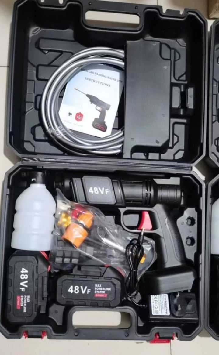 The length of the outlet pipe: 5mIt is easy to start in that you insert the 98V battery and then get started. The handheld pressure washer allows you to start immediately with cleaning freely and without cables .