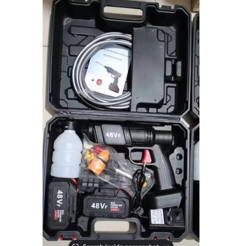 Name: Wireless Pressure CleanerType: Electric Water Foam MachineMotor Type: Carbon Brush MotorItem Type: Car WasherColour: Black Material: plasticBattery capacity: 15000mah (98VF lithium battery)