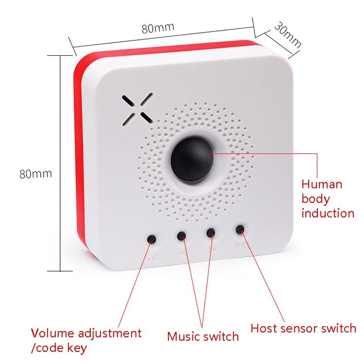 9. Intelligent human body sensing recognition, 125 degree sensing angle, 4-6 meters sensing range, when a moving object enters the sensing area, it will automatically ring and flash red light