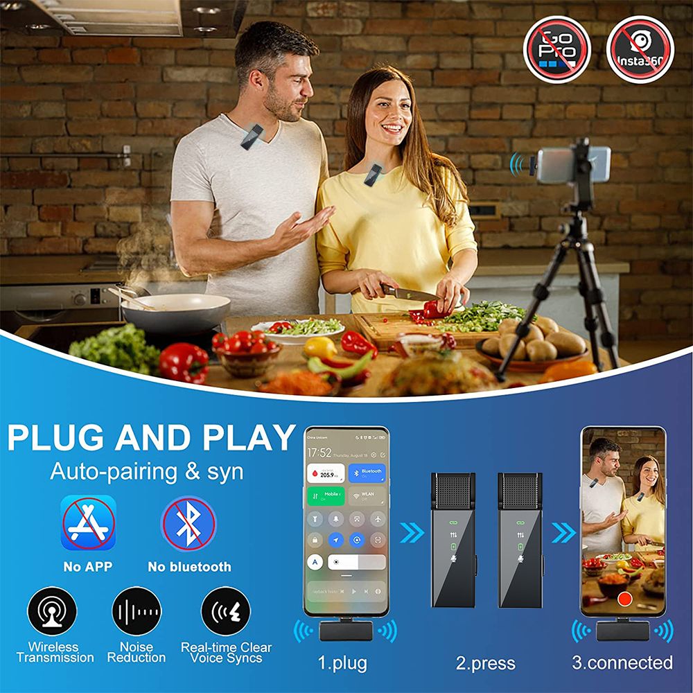 Plug & Play: just let receiver plugin cell phone, the microphones will auto pairing, easy to use. Simply clip lapel microphone on shirt, ready to miking podcasting recording. Just click the M button helps you quickly muting the mics in seconds, no need to be troubled to disconnect like others