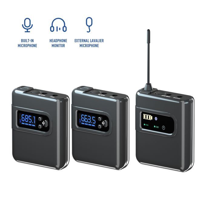 Transmitter-convert sound into ultra high frequency electrical signal. 360° omnidirectional pickup, superior noise cancellation, clear sound quality.