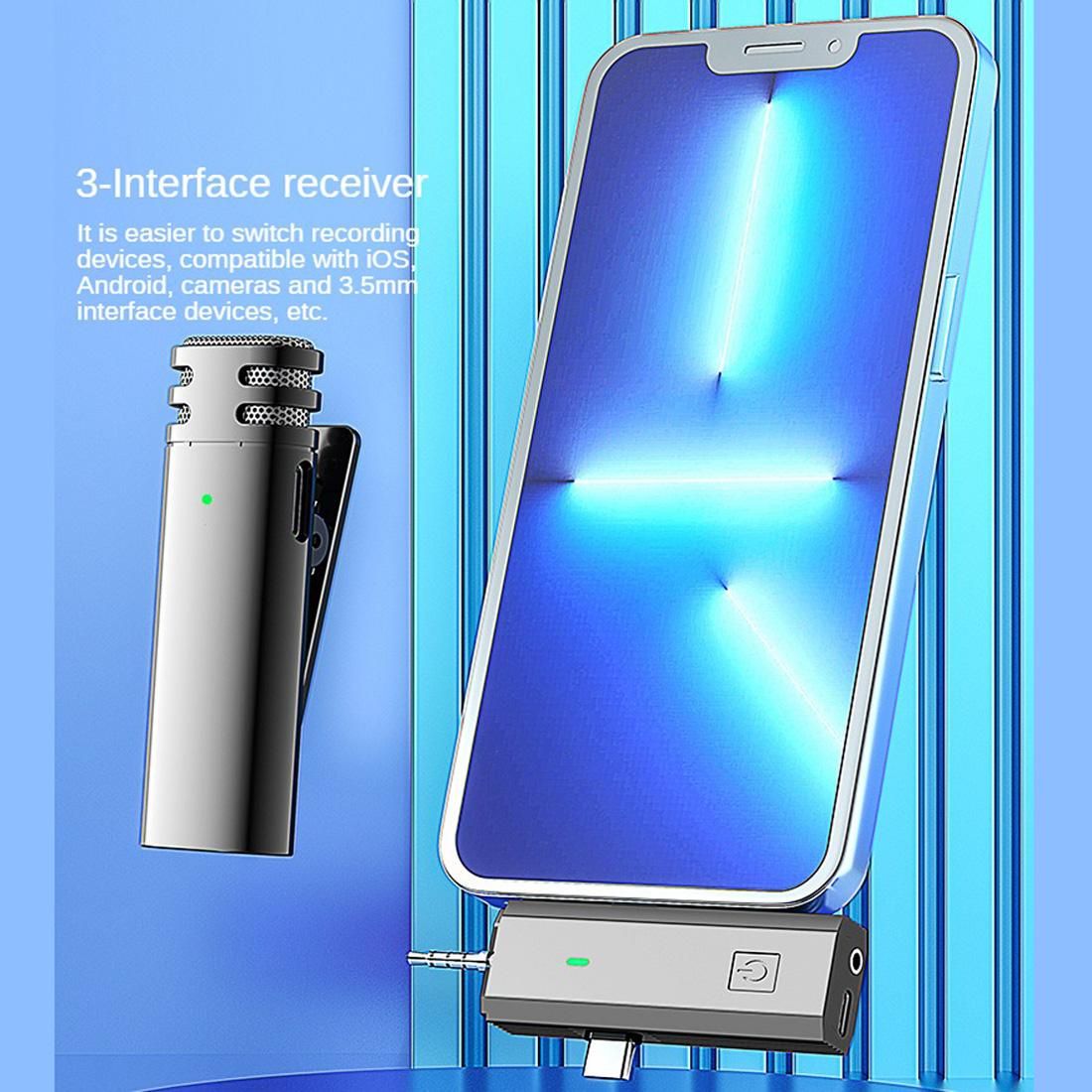 This wireless lavalier microphone set is the perfect solution for anyone seeking high-quality audio recording in a small and portable package. The set includes a receiver that is compatible with iOS, USB-C, and 3.5mm interfaces, making it an ideal choice for a wide range of devices.