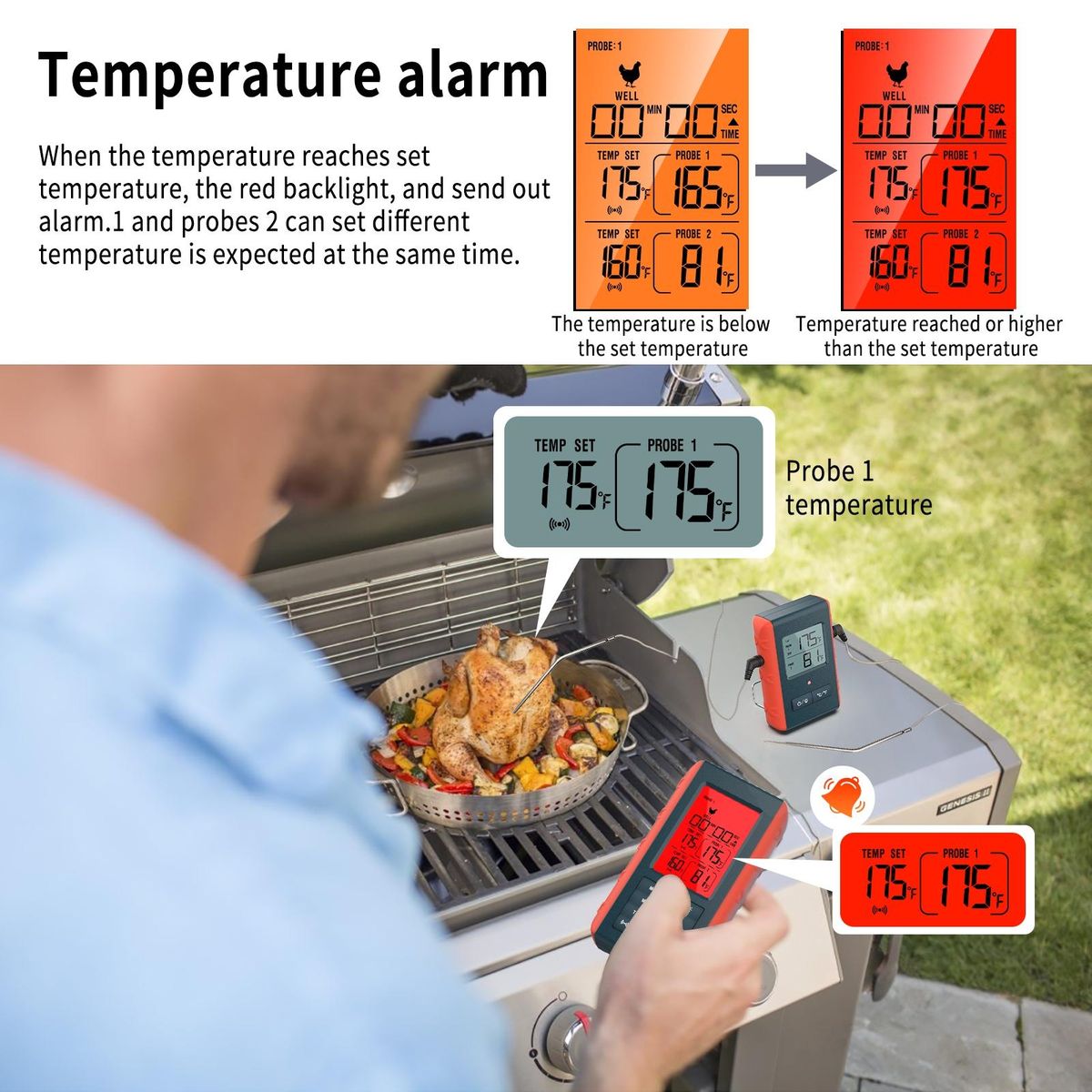 Buy Wireless Meat Thermometer with 2 Propes for Grilling Kitchen Food Cooking Thermometer Digital Meat Thermometer Wireless for Smoker Oven Outside Grill BBQ Accessories 100M/328ft Remote Range in Nigeria