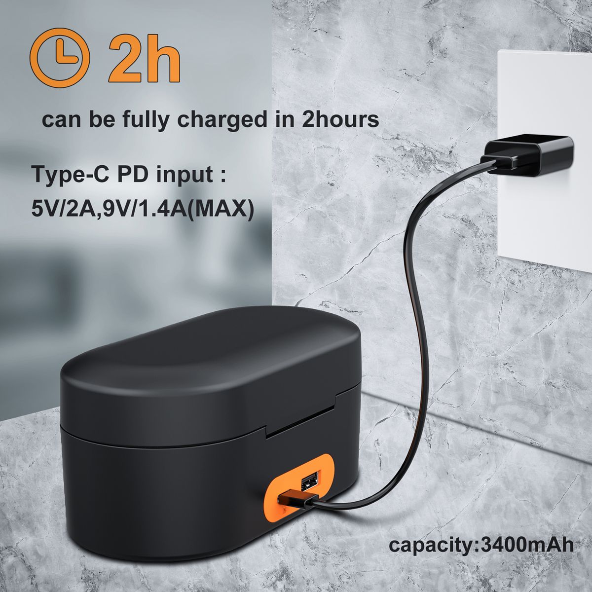 Built-in 3400mAh large capacity battery, supports and discharging at the same time, long-lasting battery life.