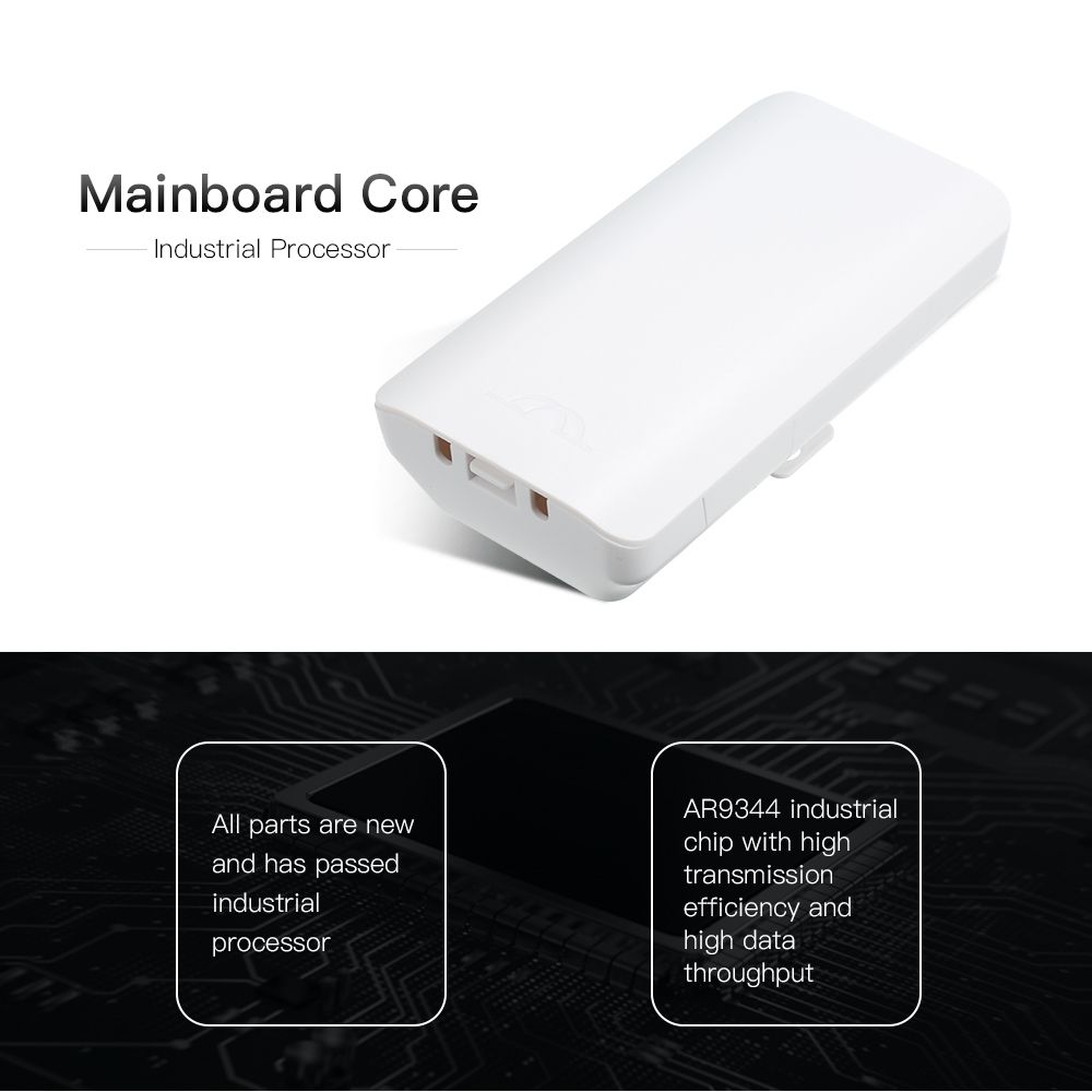 The mainboard core has passed industrial processor. All parts are new and use AR9344 industrial chip with high transmission efficiency and high data throughput.