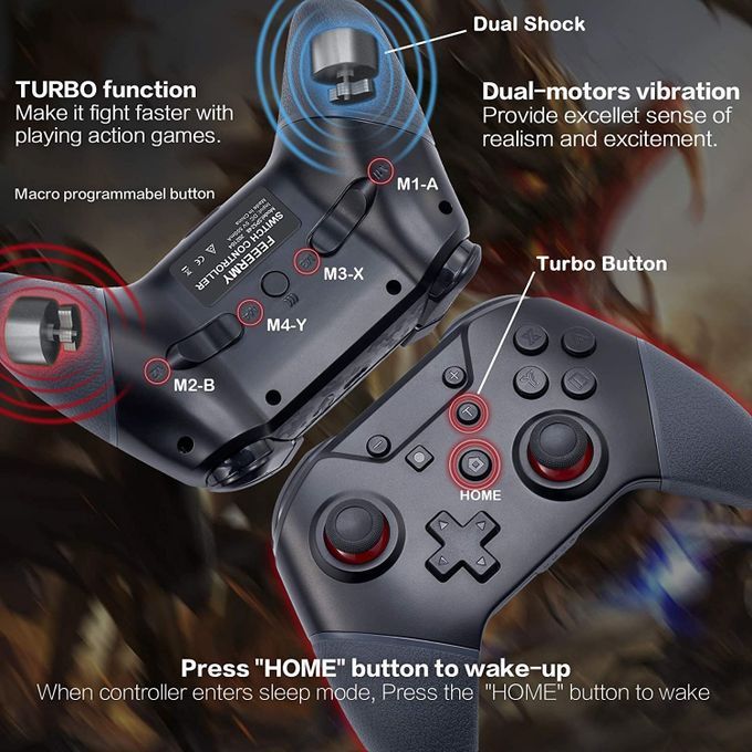 Turbo &Dural Vibration: Built in dual motors enhance gameplay with adjustable vibration, this switch pro controller can puts you in the game with physical feedback and ultimate gaming experience.