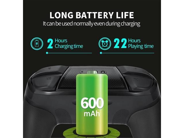 4. Long Playtime Wireless Pro Gamepad The bluetooth controller with built-in 600mAh re.chargeable battery can ensure 12-22 hours continuous playing after fully charged. Comes with a 47 Inch Type-C to USB cable, so you can enjoy the game while charging.
