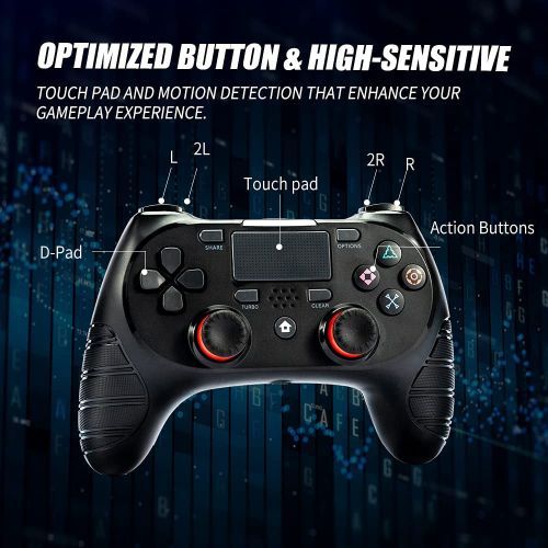 - Precision Control: The ergonomic design of our wireless controller for PS4 was specially designed to ensure perfect control and execution. Improved feel, shape, and sensitivity of dual analog sticks and trigger buttons that offer players absolute control.Besides, with unique Turbo feature, you can win faster than ever.