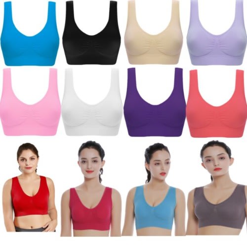 Whether you are petite or a full figured woman, this Triple Threat Bra can be used as a mild hold Sports Bra, a Maternity (Nursing) Bra, and a Sleep Bra. All you need to do is just to select your dress size and you'll have a bra that's comfortable, conforms to your shape and makes you look your best. No need to worry about your cup size. Call it the underthings, incredible fit, and removable modesty pads for extra lift. Seamless Stretch padded Sports Bra, Sleeping Bra, there are no hooks, wires, clips or straps to adjust (or cause discomfort!). Curve-hugging Seamless design. We call it your essentials; this Seamless Wireless Padded Sports, Maternity (Nursing), Sleep Bra is great on the body, perfect in your closet and awesome for mentioning.