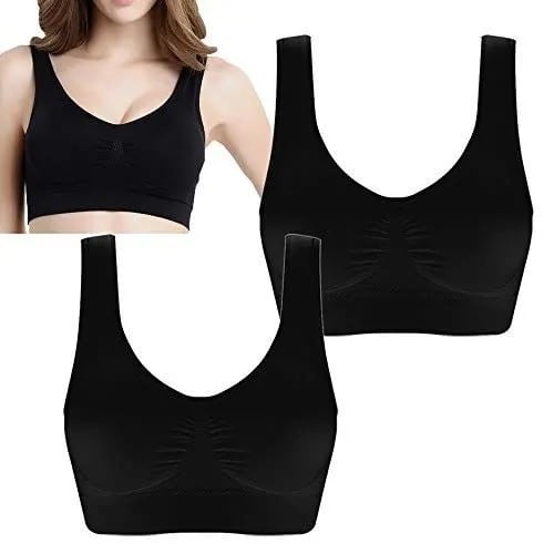 This a comfortable and functional fashion bra. There & rsquo;s no wires, clips hooks or straps to adjust and you won & rsquo;t have to worry about any pinching, binding, chafing or other discomforts. You can put on the seamless bra easily just by pulling it over your head or stepping into it. It features soft, full coverage cups with V neck and wide shoulder straps as it suits all body sizes.