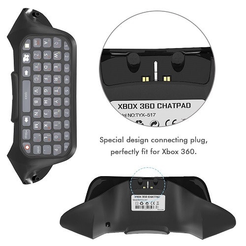 Just connect the keyboard to the back of the XBOX 360 wired controller or wireless controller ,then you can start the text messages in the games to execute text input function. With optimal keyboard design, you can type quickly only by your thumb,which makes it more convenient and confortable to use.