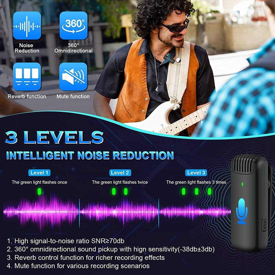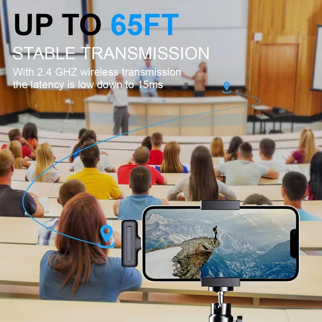 [2.4GHz wireless transmission technology]The lapel microphone adopts high-sensitivity pickup microphone, 0.009s transmission delay helps you reduce power failure, stable and low-latency wireless transmission up to 60 feet ~ 70 feet (about 19.8 meters) ~ 70 feet (about 21.3 meters) , no need to worry about recording short distances. While recording, you can move around freely.
