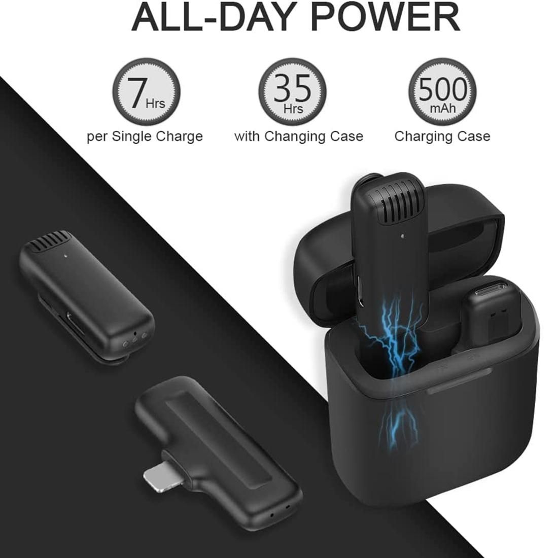 [High Battery Capacity and Lightweight]The charging case has a capacity of 500mAh, which can charge the microphone more than 4 times. A fully charged microphone can work continuously for 7 hours, which is equivalent to a total microphone endurance of up to 35 hours. Besides, it is easy to carry and don't worry about running out while working.