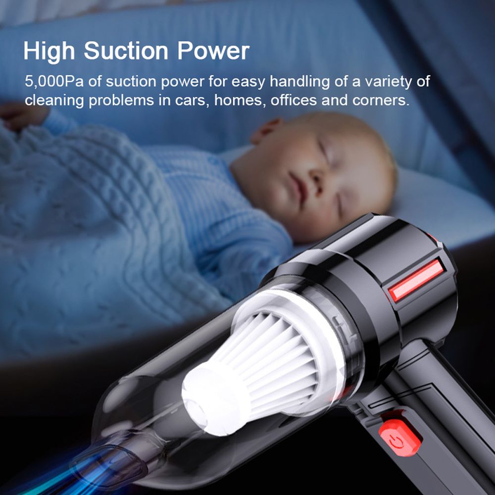 High Suction Power: 5,000Pa of suction power for easy handling of a variety of cleaning problems in cars, homes, offices and corners.