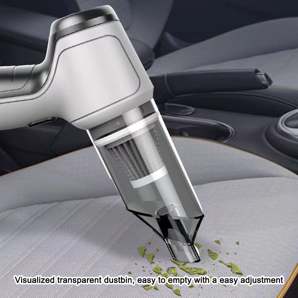 This wireless vacuum cleaner is compact, with a large suction of 9,000Pa for easy handling in car/home/office/cavity corners. Pure copper motor, bringing surge , suction lasting without heat, effective and , sucking out stubborn dust. Customized with multiple accessories to solve cleaning issues, efficient vacuum experience, and multi-scene testing. Visualized transparent dustbin, easy to empty with a easy adjustment. Equipped with a washable filter, washable and repeatable for longer use.