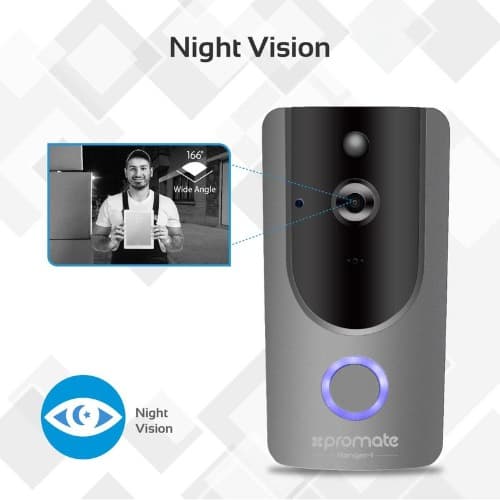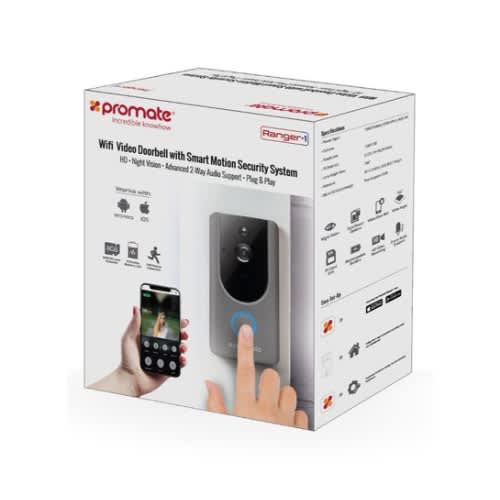 The Promate Ranger-1 video doorbell enables you to supervise your door anywhere anytime. Get instant alerts when visitors press your doorbell or trigger the built-in motion sensors. With 720p ultra HD video and smart night vision, no matter in the daytime or at night, you can see what happen around your door with infrared night vision. Receive notification on your phone when activity is detected near the door. Phone alerts you when visitors are at your front door.
