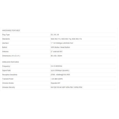 Increase your WiFi signal: Increase your existing network range and offer WiFi up to 300Mbps. This compact N300 WiFi wall amplifier is small and discreet, it blends easily into your home decor.