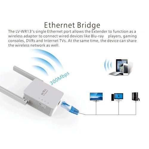 300Mbps Wifi Extenders Signal Amplifier: WR13 2.4G WIFI Amplifier, Compatible with any 802.11n / g / b wireless network device, 300Mbps transmission speed, 2.4 GHz Radio frequency, smoothly stream your videos, photos, and music to your connected TVs , media players, smart phones, tablets, TV sticks, etc., an Ethernet port for connecting wired devices.