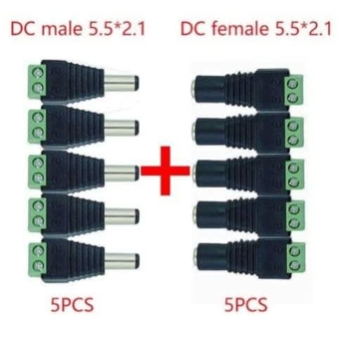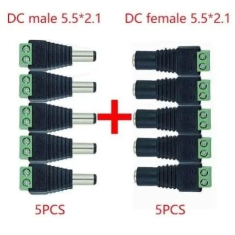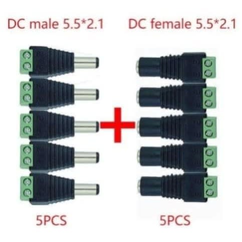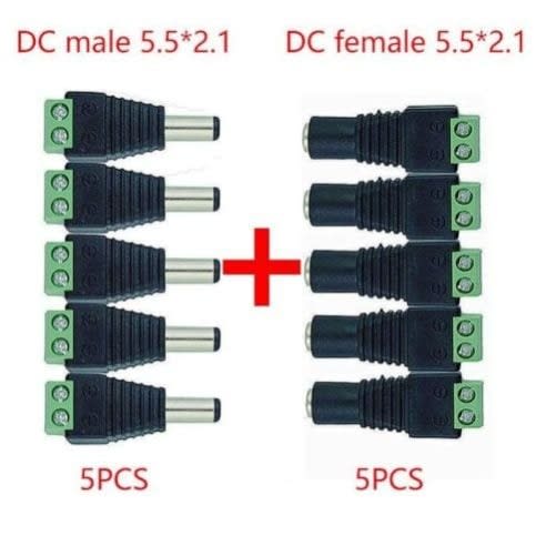 Dc Power Female/ Male Jack Connector Cable Adapter Plug For Cctv Cameras -10pieces