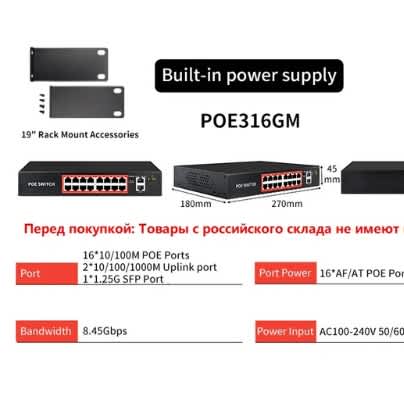 4 x 10/100Mbps PoE Ports + 2 x 10/100Mbps RJ45 PortsSupports IEEE 802.3af/at 30W PoE CCTV Mode supports 250m long distance and port isolation function PoE watchdog detects, reboots unresponsive PoE-powered devices PoE power budget can be up to 35W Plug and play with no configuration required