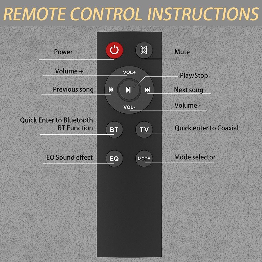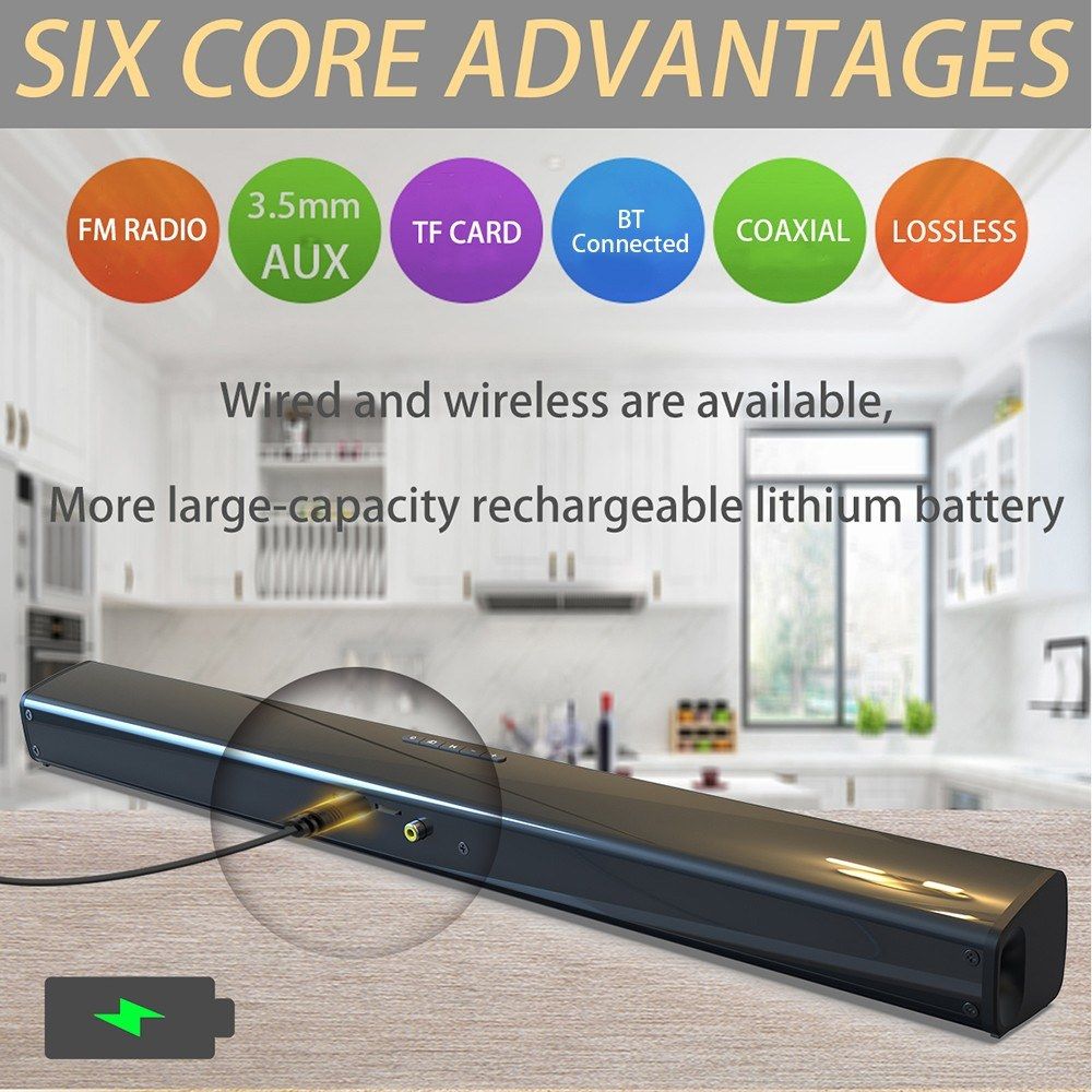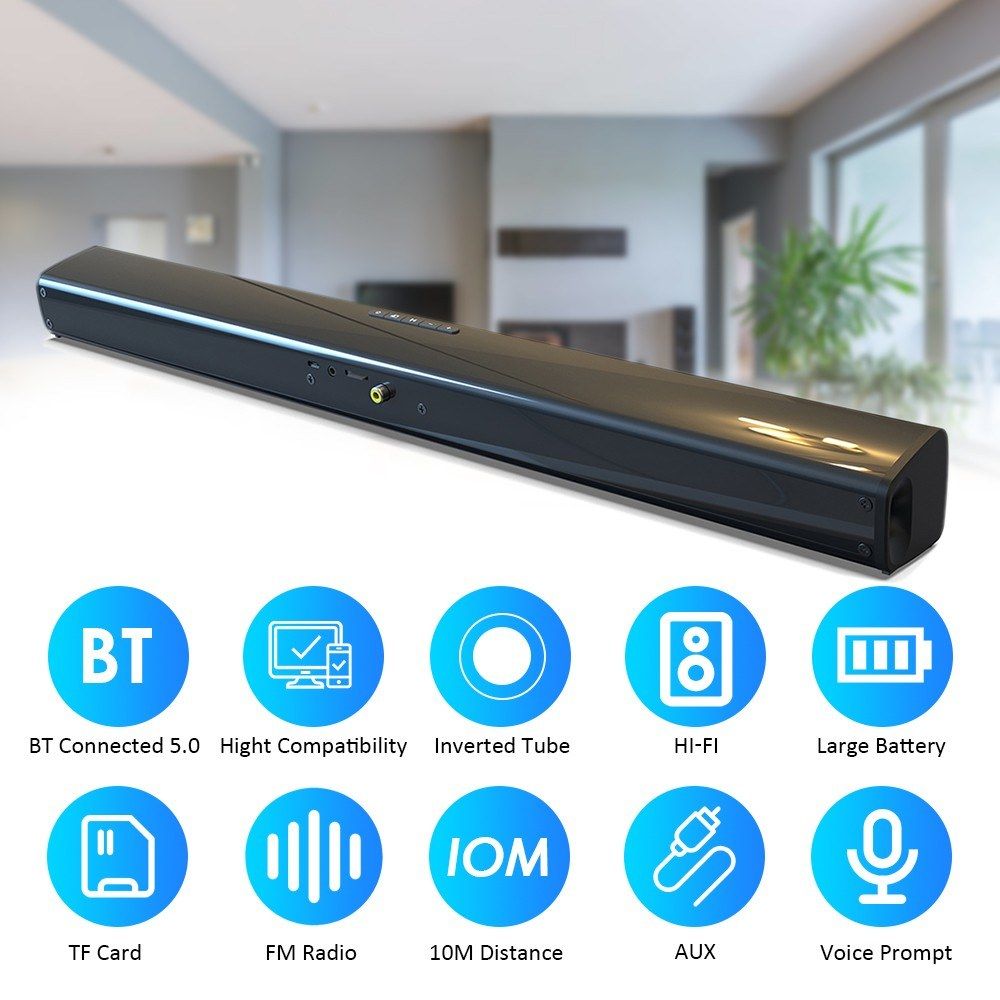 This wirelessly soundbar with BT 5.0 connected function allows you to enhance your TV experience with stereo, real dynamic sound. Providing you extraordinary experience when you are watching your favorite concerts and movies. What are you waiting for? Just buy and enjoy.