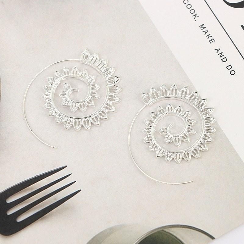Buy Wish speed new products leaves spiral personality rotating roman earrings leaves earrings jewelry female Silver in Nigeria