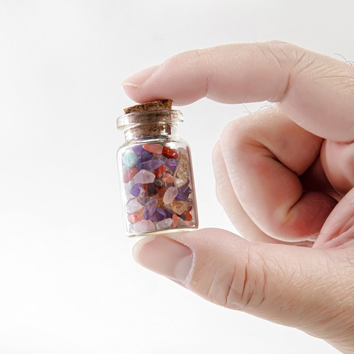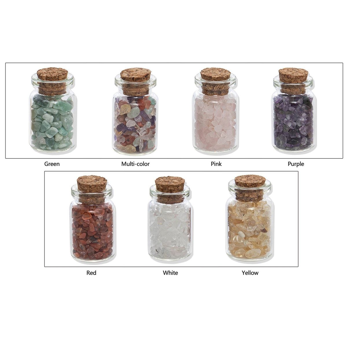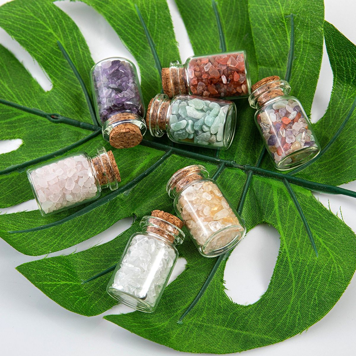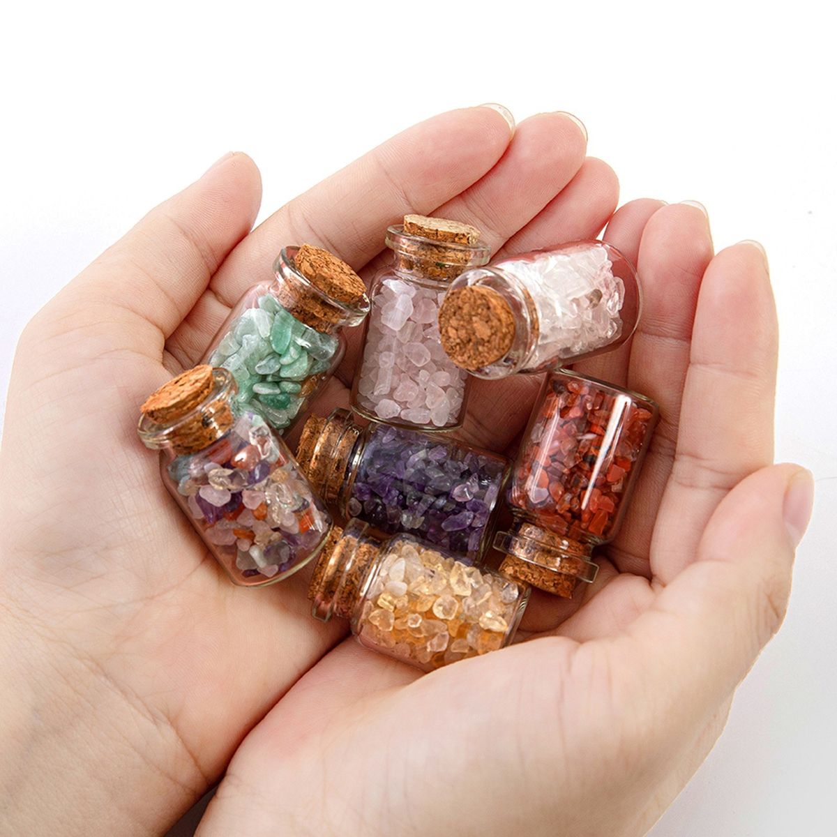 The wishing bottle contain pieces of natural crystal irregular stones, can be used for meditation, healing, decoration, succulent plants, or to enjoy natural polished stone.