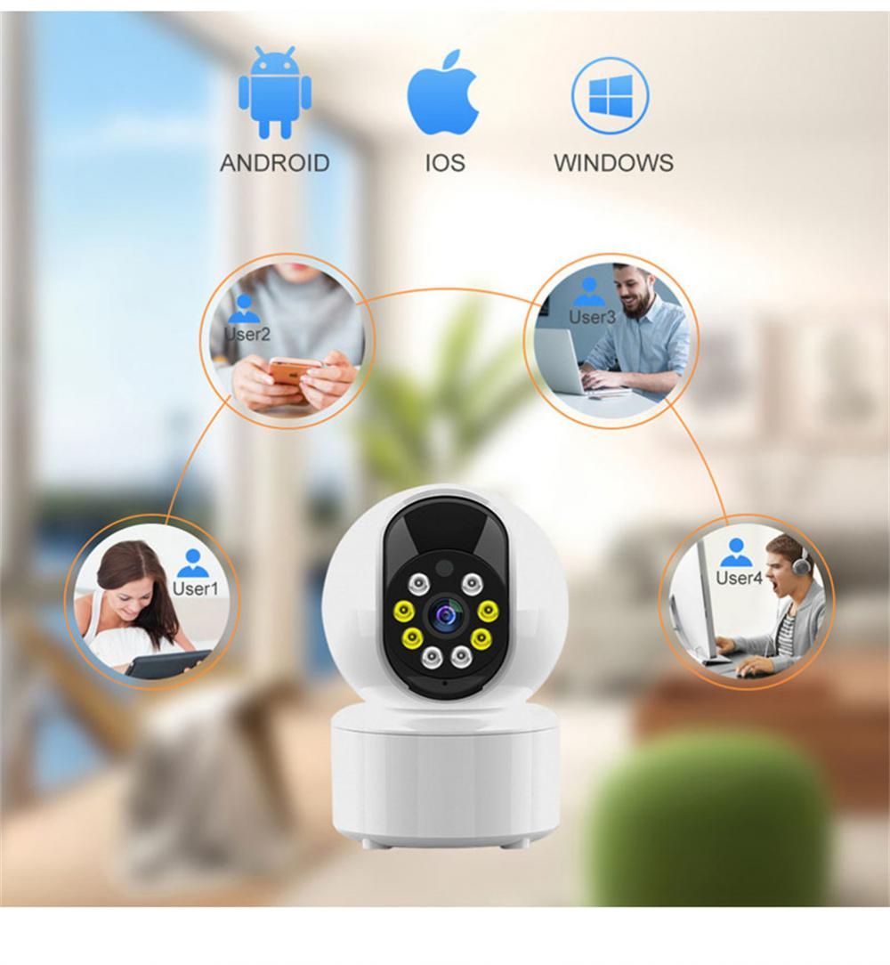 With Auto Tracking Baby Monitor Wifi Wireless Camera P2p Night Vision Home Remote Mobile Phone Ip Camera Cctv Camera IndoorDescription:Gimbal angle: horizontal: 350° vertical: to 90°Definition: 100W HD pixelsDetection function: APPremote detection, motion detectiorInfrared night vision: 4 infrared lightsAlarm: Support voice alarm and picture pushNight vision: HD infrared night visionVoice call: A two-way voice callStorage: Cloud storage Specifications:1.Smart gimbal rotation recording Install the memory card and power on the camera to automatically store video recordings 24 hours a day.2.lt is widely applicable inmultiple scenarios Adopt a new generation of artificial intelligence architecture to identify humanoid wheel corridors faster. 3.Smart housekeeper helper Adopt a new generation of artificial intelligence architecture to identify humanoidwheel corridors faster.4.[Smooth Pan and Tilt Monitoring] Cameras head are rotatable with 355° pan and 60° degree tilt.You can control it by APP to get a sweeping view on every inch of your house.Package Included:1x Wireless IP Camera1x Power Supply1x User Manual ( English Only)1x Bottom Cover & Screws