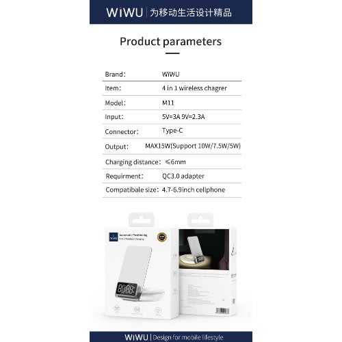Buy Wiwu M11 4 In 1 Wireless Charger With Time Clock in Nigeria