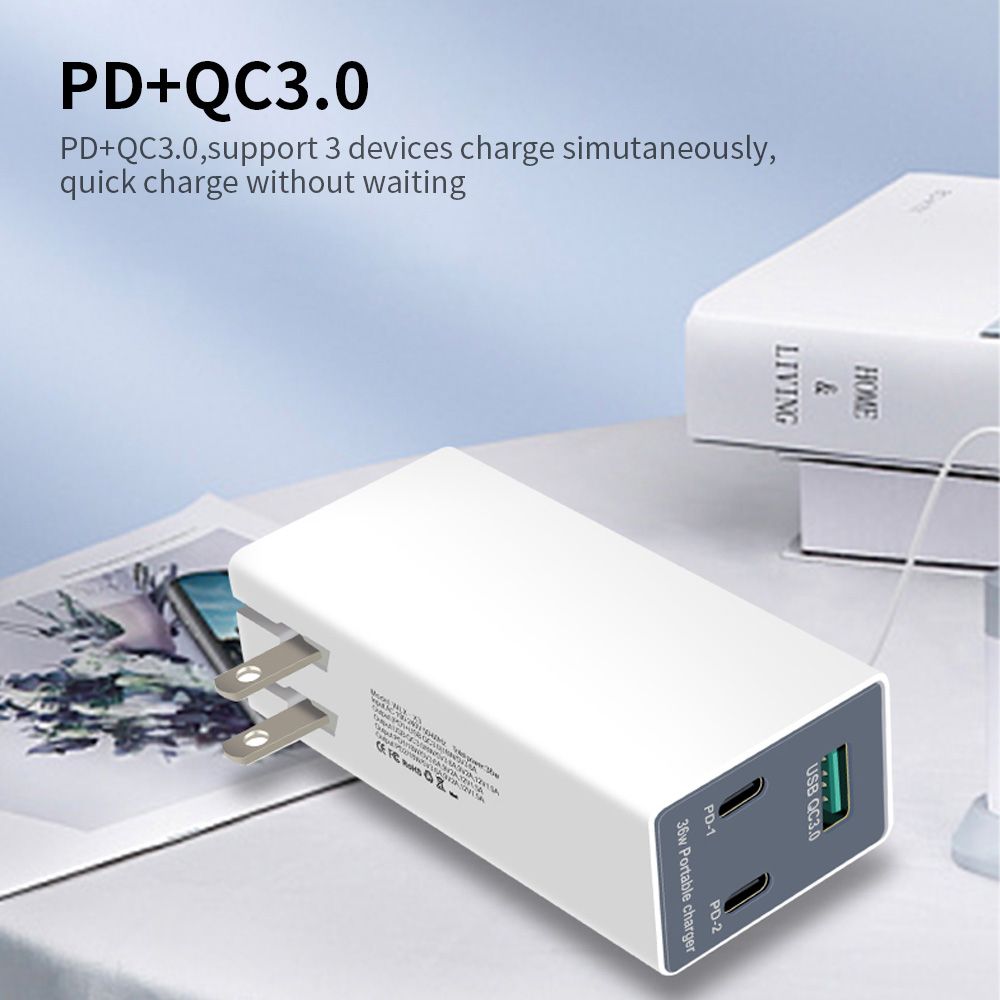 PD+QC3.0,support 3 devices charge simutaneously,quick charge without waiting.