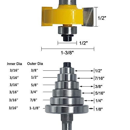 Details: Wolfride 1/2 Inh Shank Rabbet Router Bit Rabbeting Router Bits with Bearing Set 1/8", 1/4", 5/16", 3/8", 7/16", 1/2"