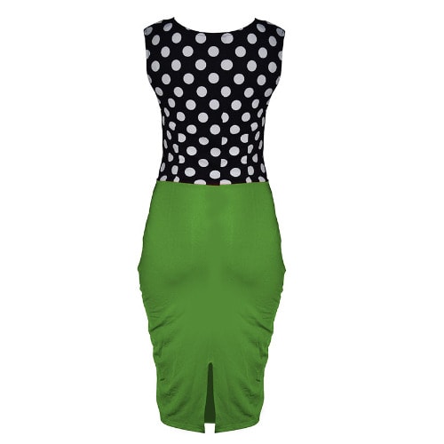 Buy Woman Polka Dot Sleeveless Elegant Office Dress With Belt - Green in Nigeria