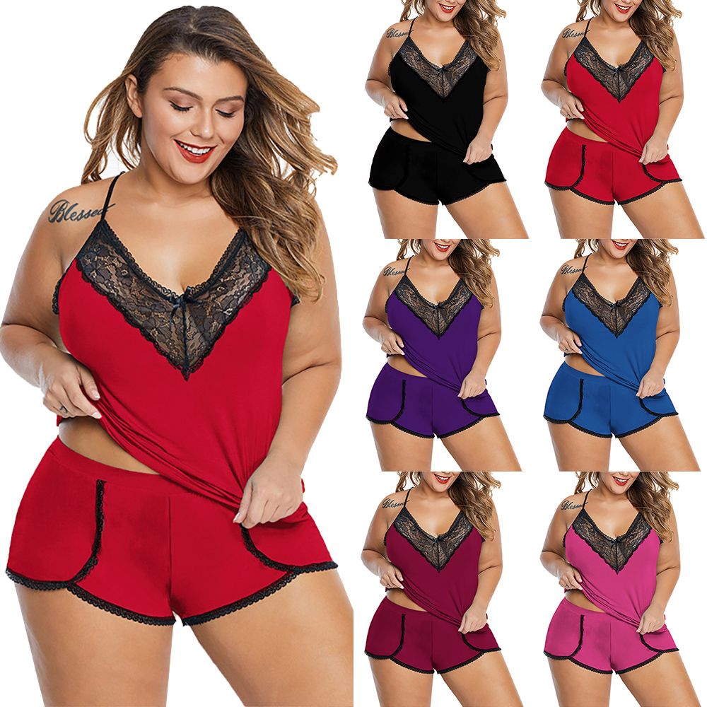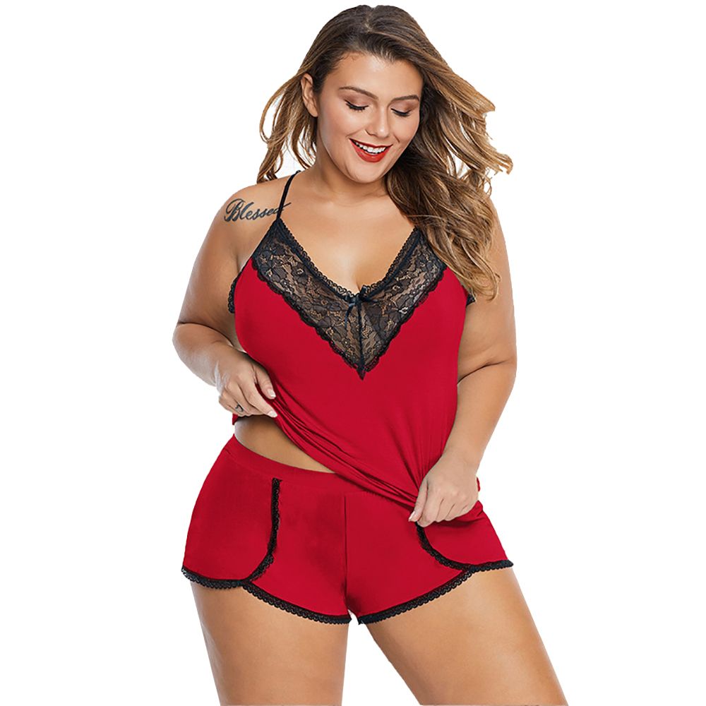 1X Woman y Underwear Set Plus Size Lace Stitching See Through Mesh Backless Suit Costume Fashion Pajamas Sleepwear