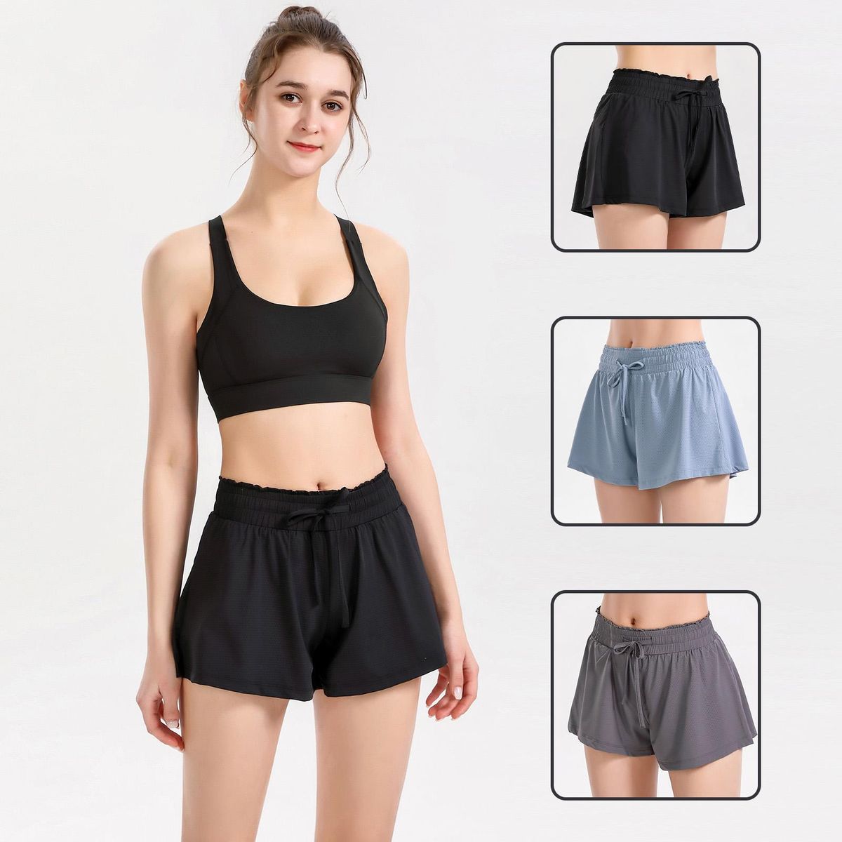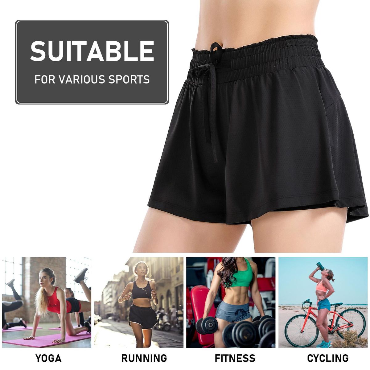 Buy Women 2-in-1 Sports Shorts High Waist Breathable Quick-drying Drawstring Running Fitness Sportswear in Nigeria