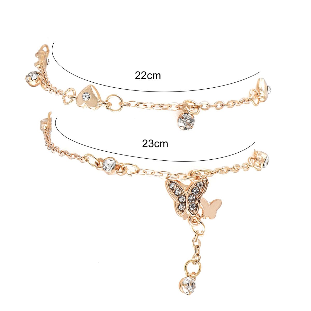 The inner circumference of anklet is 22cm, the outer circumference of anklet is 23cm.