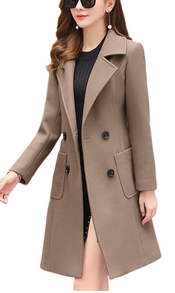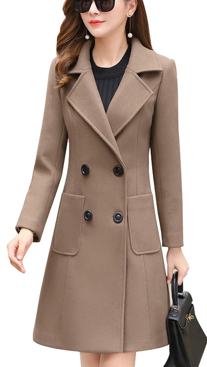 Mid-long wool blend pea coat with 2 hand pockets at side