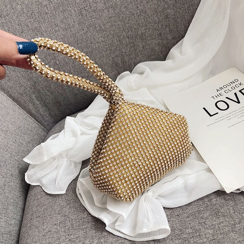 Women Fashion Banquet Party Diamond Handbag(Gold)