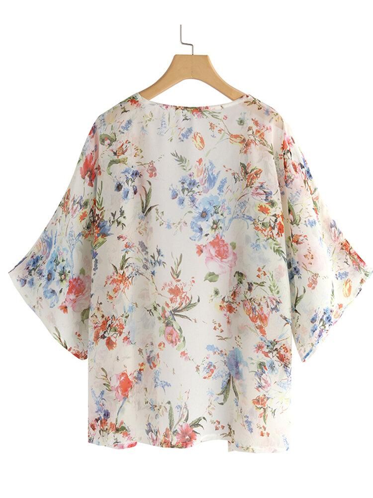 Buy Women Bat Sleeve Floral Print Bohemian Style Simple Casual Cardigan in Nigeria