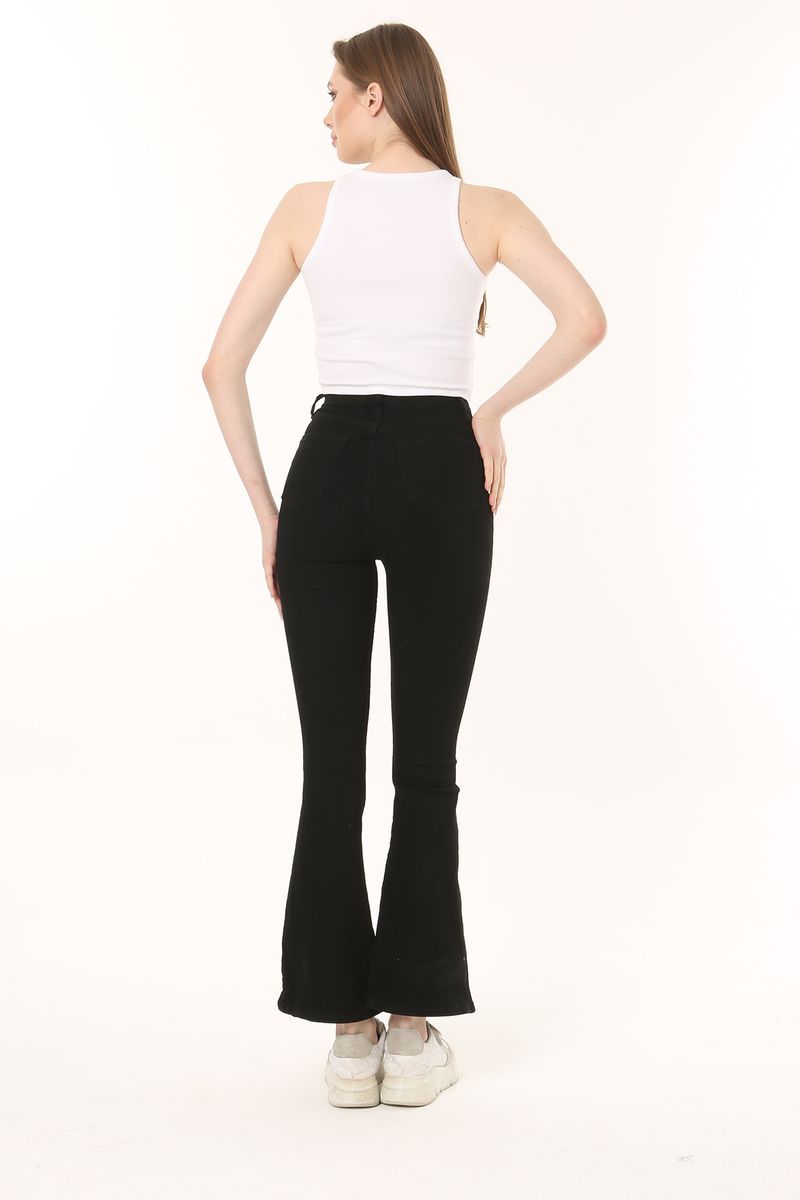 Women Black High Waist Stretch Flare Jean Trousers,Black,Women,Spring/Summer,Wash with similar colours. Do not dry with sunlight directly.WARNING! Keep away from fire.