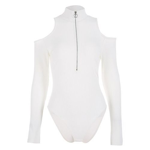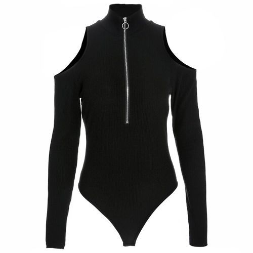 1X Women Black Off Shoulder Bodysuits Autumn Long Sleeve Sexy Turtleneck Body Women Bodycon Zippper Bodysuit