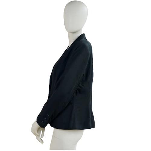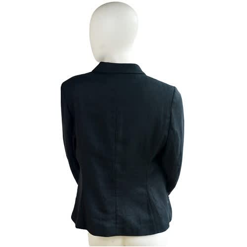 A classic black linen blend adds a stylish to your collection. With a double-breasted closure, this flattering notched collar jacket could be paired with pant or skirt and nice top, shirt or just a camisole. You are on the go to a winning day. & bull; Black colour & bull; Double-breasted jacket & bull; Long sleeves & bull; Notched collar & bull; Fully lined & bull; Double breasted closure