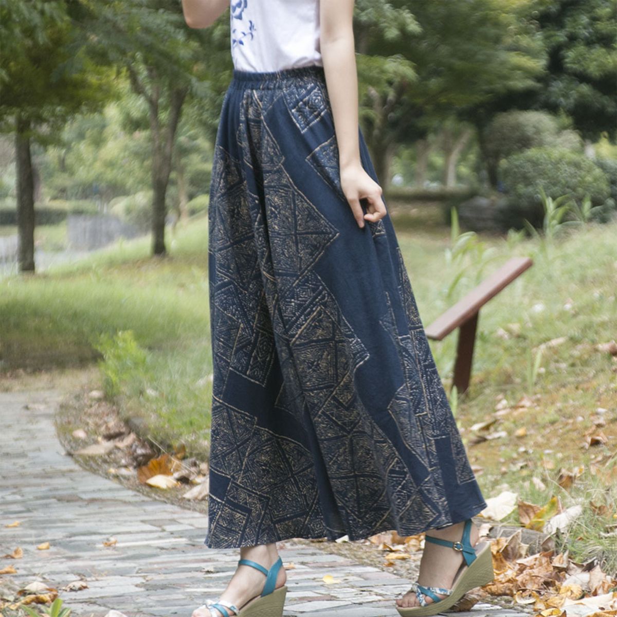 Description:Casual printed long skirt for home, lounging, travel and holiday. It has elastic waist, side pocket, print and floral pattern. Pair it with T-shirt, flats or sneakers for a relaxed style. Try it for your leisure time in spring and autumn.