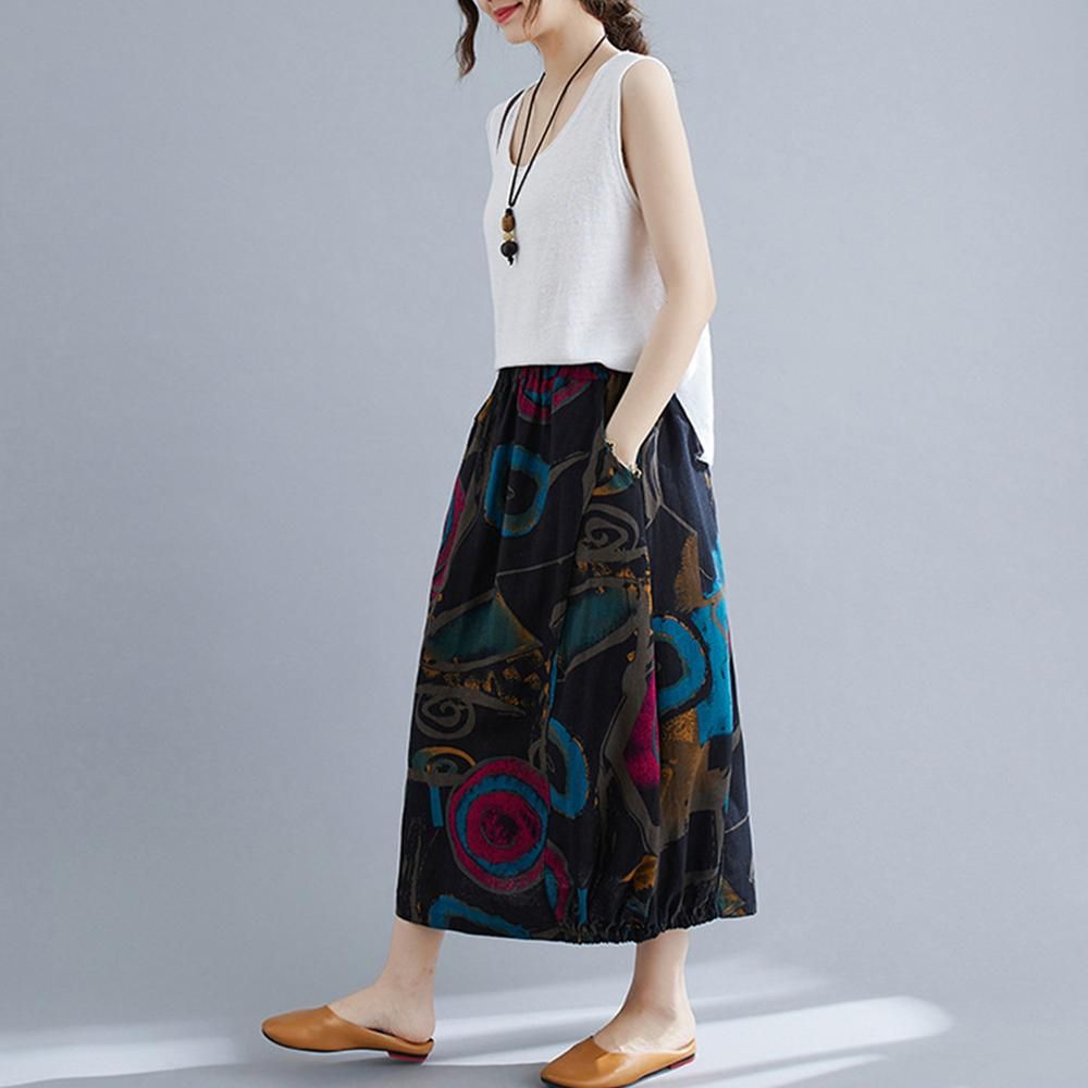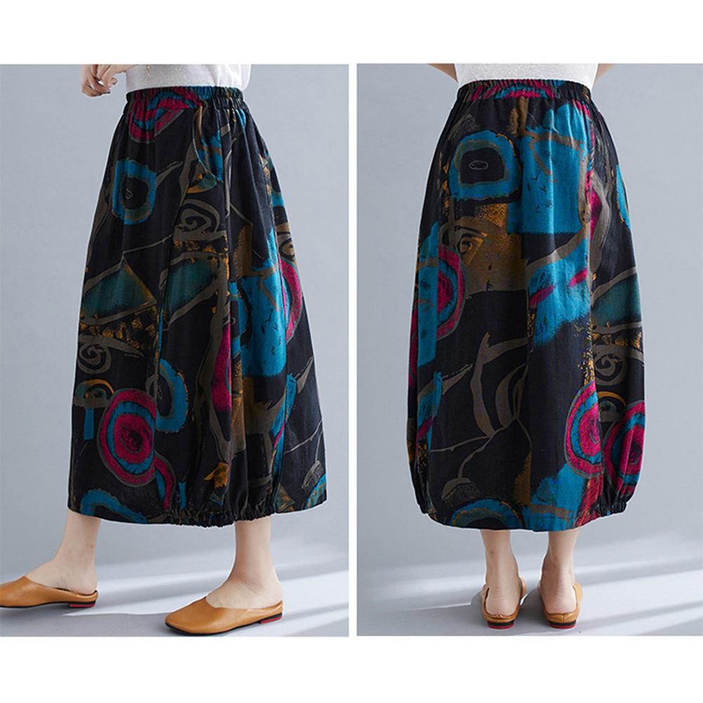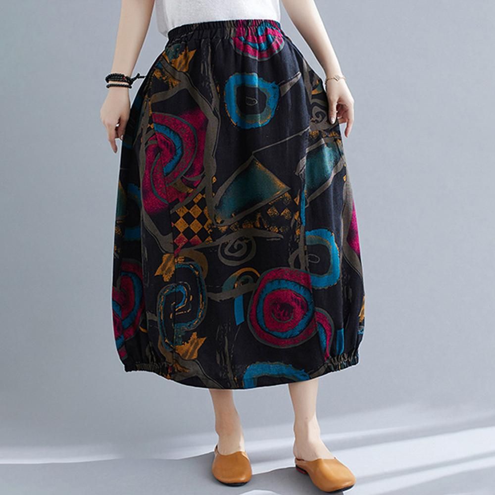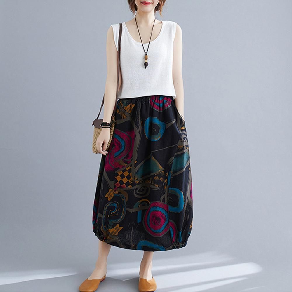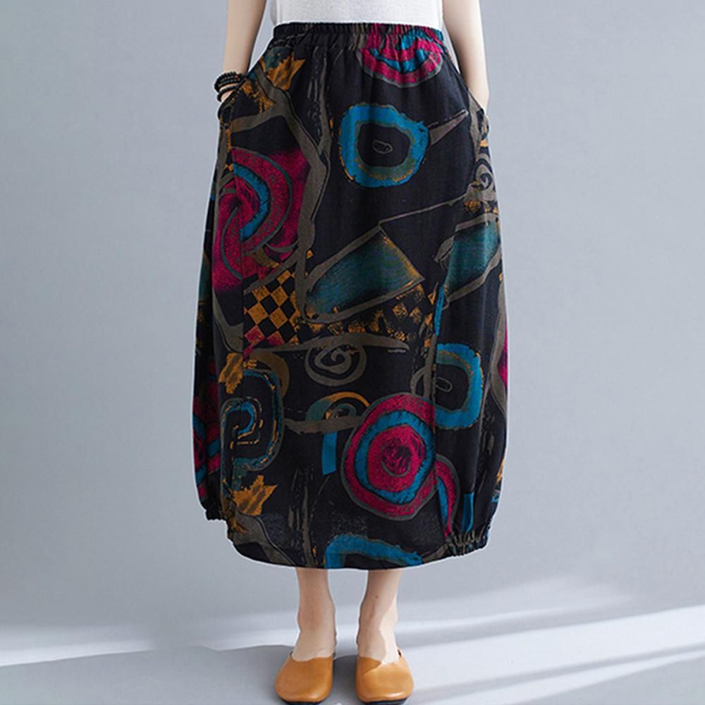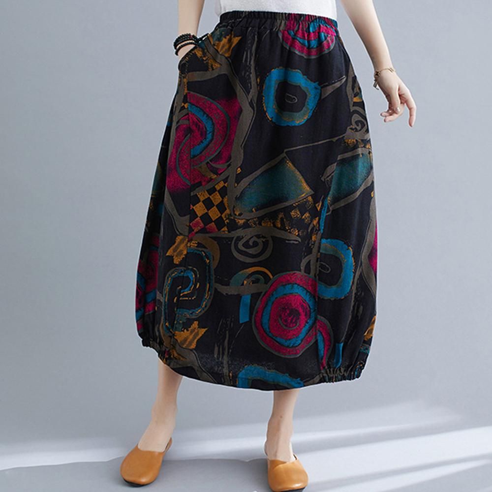 Buy Women Boho Vintage Print Bud Skirt with Elastic Waist Side Pockets Casual Holiday Floral Skirt Multicolor in Nigeria