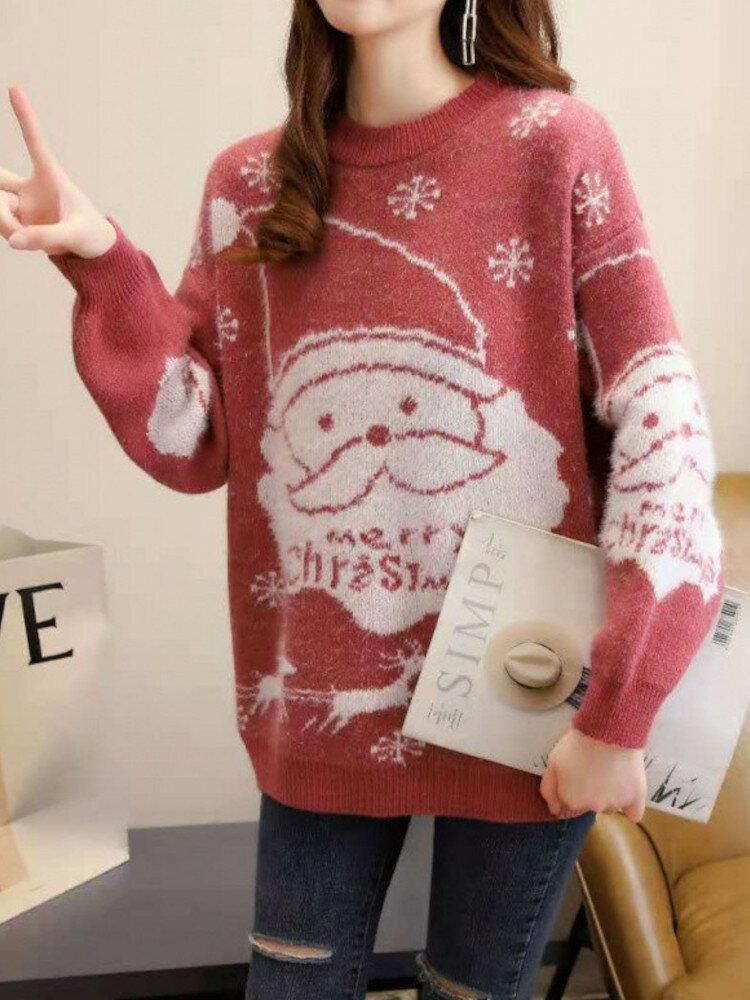 Buy Women Christmas Thermal Knit Cartoon Santa Pattern Casual Sweaters in Nigeria