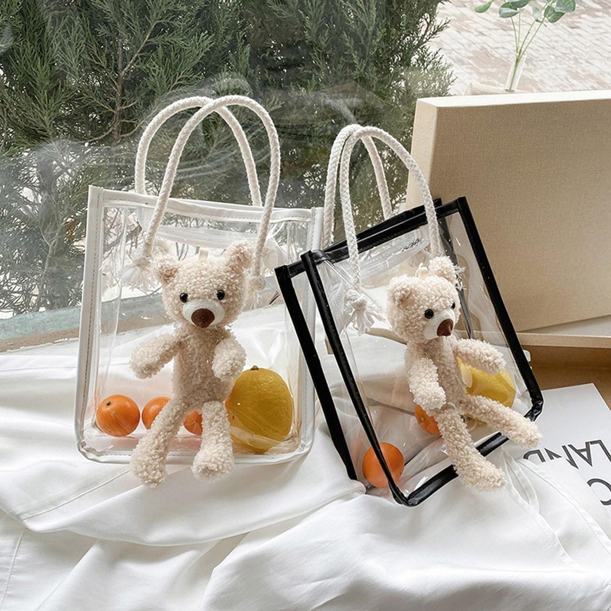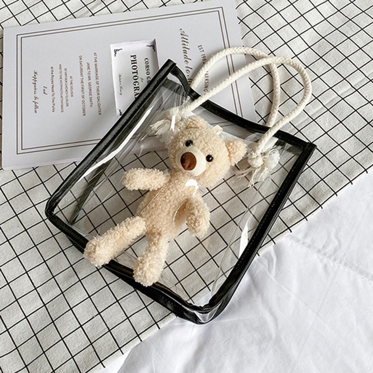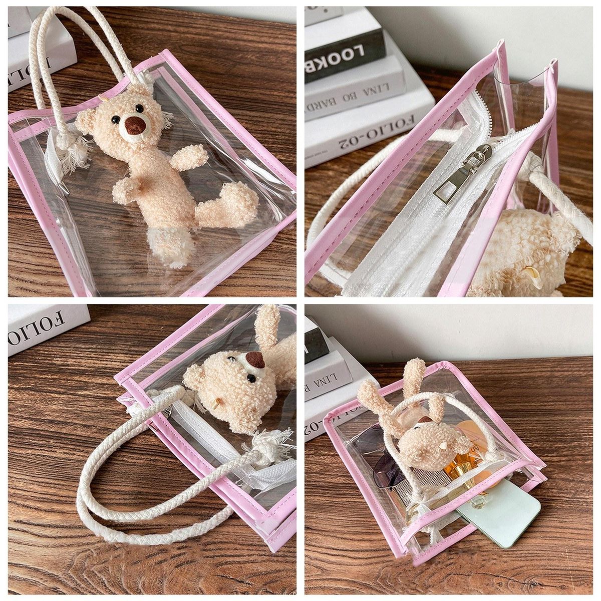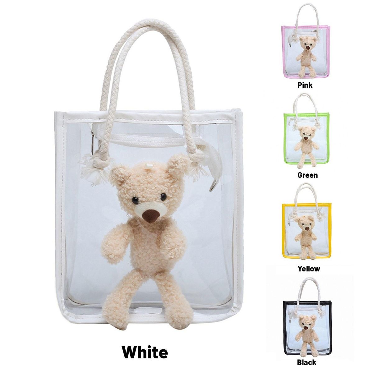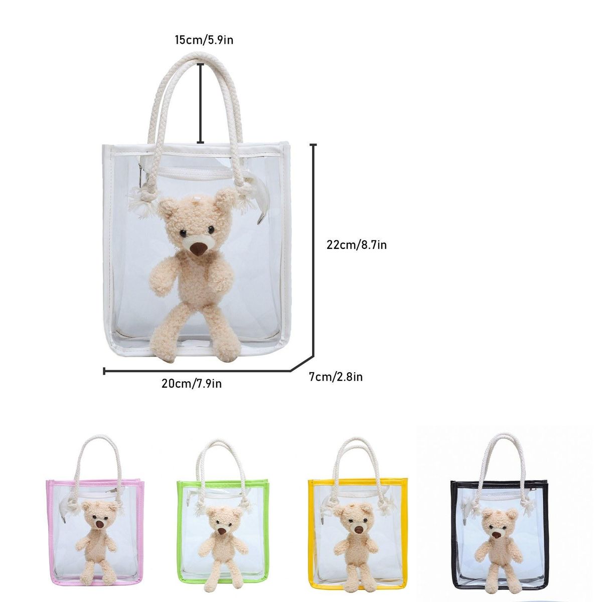 Buy Women Clear Tote Bag with Cute Bear Zipper Closure Fashion Transparent Handbag for Beach Work Sport in Nigeria