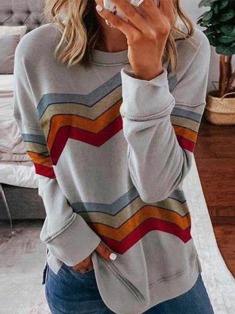 Buy Women Colorful Chevron Print Pullover Long Sleeve Casual Sweatshirts in Nigeria