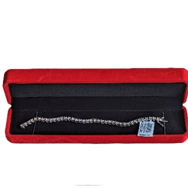 Truly stunning, this tennis bracelet (12 ct. t.w.) is designed with an eye to luxury with gorgeous hand-chosen round-shape diamonds expertly set within a polished white gold setting.